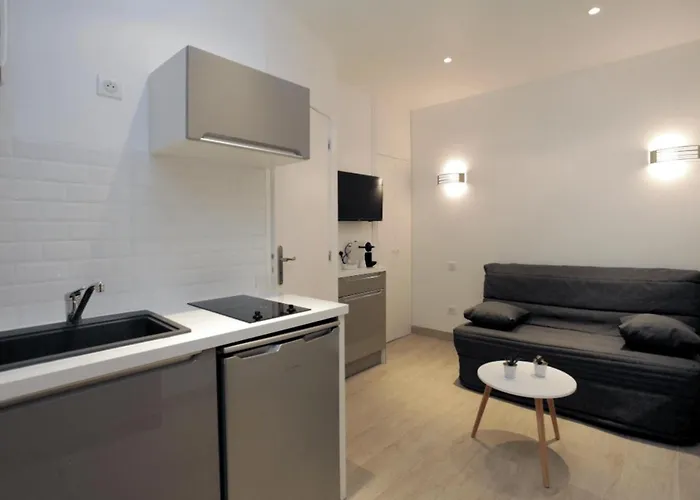 Cannes Şehir Merkezi semtinde bulunan 14 metrekarelik ve 2 kişilik Studette Au Centre Cannes dairesi Festival ve Kongre Sarayı'den 5 dakikalık yürüyüş mesafesinde bulunur. 1 yatak odalı dairede hızlı internet, çok kanallı televizyon, ütü odası bulunmaktadır.